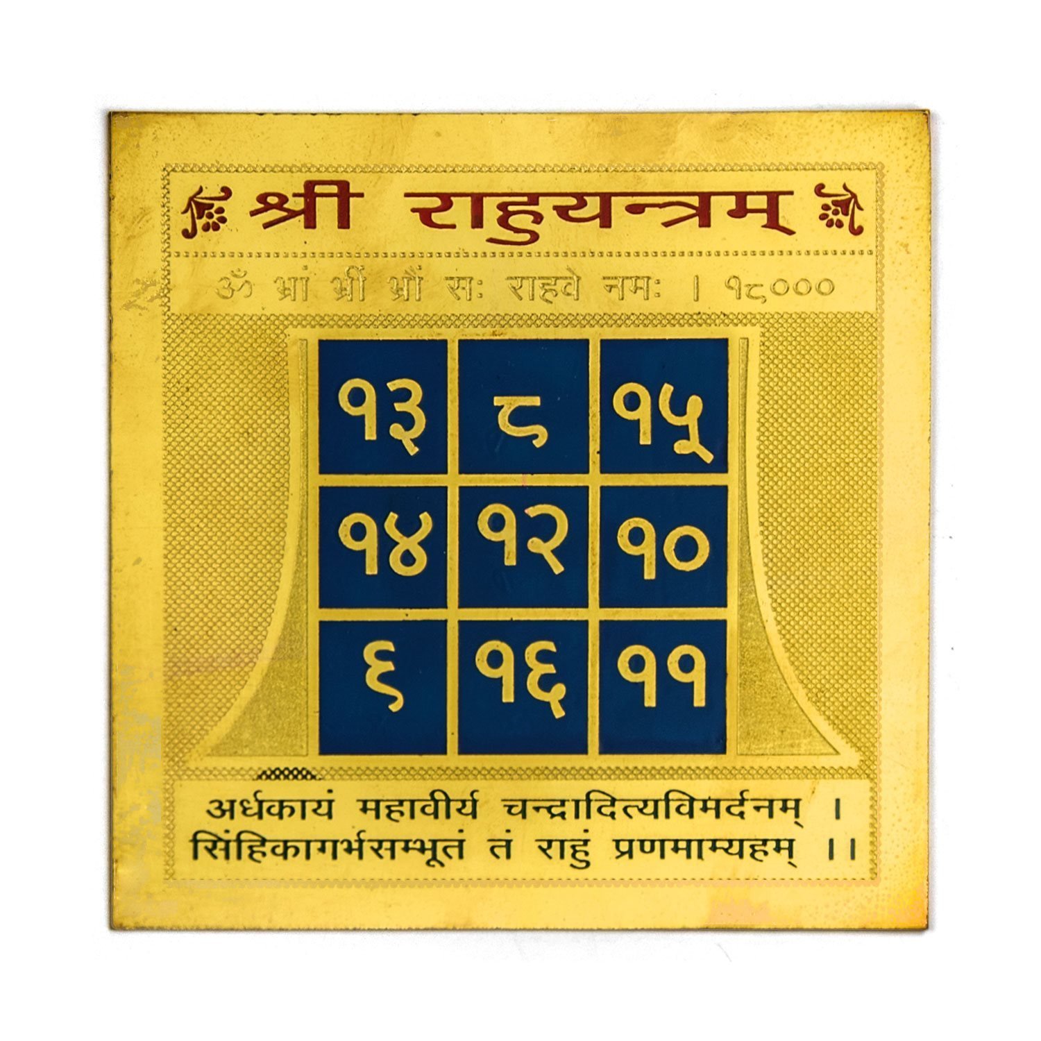 इस यंत्र को धारण और स्थापना करने से आर्थिक नुकसान मुक्ति मिलती है तथा सुरक्षा समृद्धि प्रेम लंबी आयु वह धन की प्राप्ति होती है। राहुदेव के लिए प्रतिदिन विधिवत मंत्र जाप और सस्वर पाठ किया जाना चाहिए।