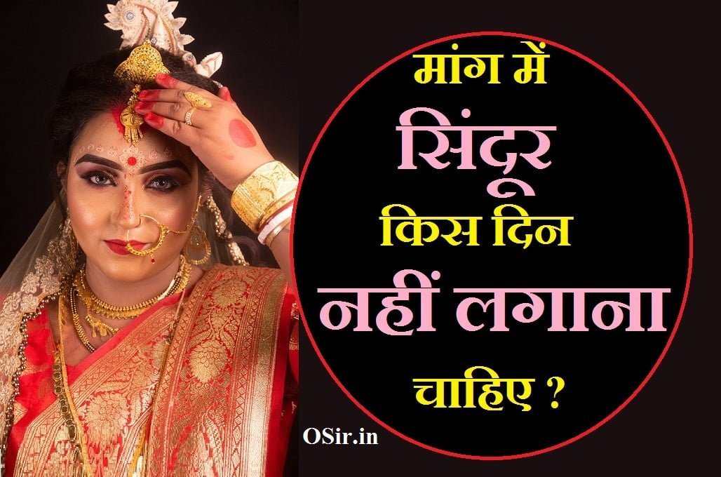 Mang me Sindoor Kis din nahi lagana chahiye ? हिंदू संस्कृति के अनुसार विवाहित महिलाएं अपनी मांग में सिंदूर लगाती है जिसका धार्मिक और वैज्ञानिक रूप से बहुत ही बड़ा महत्व है क्योंकि सिंदूर ही एक सुहाग की निशानी होता है साथ ही महिलाएं सिंदूर अपनी पति की लंबी उम्र के लिए लगाती है।सिंदूर लगाने की विधि :